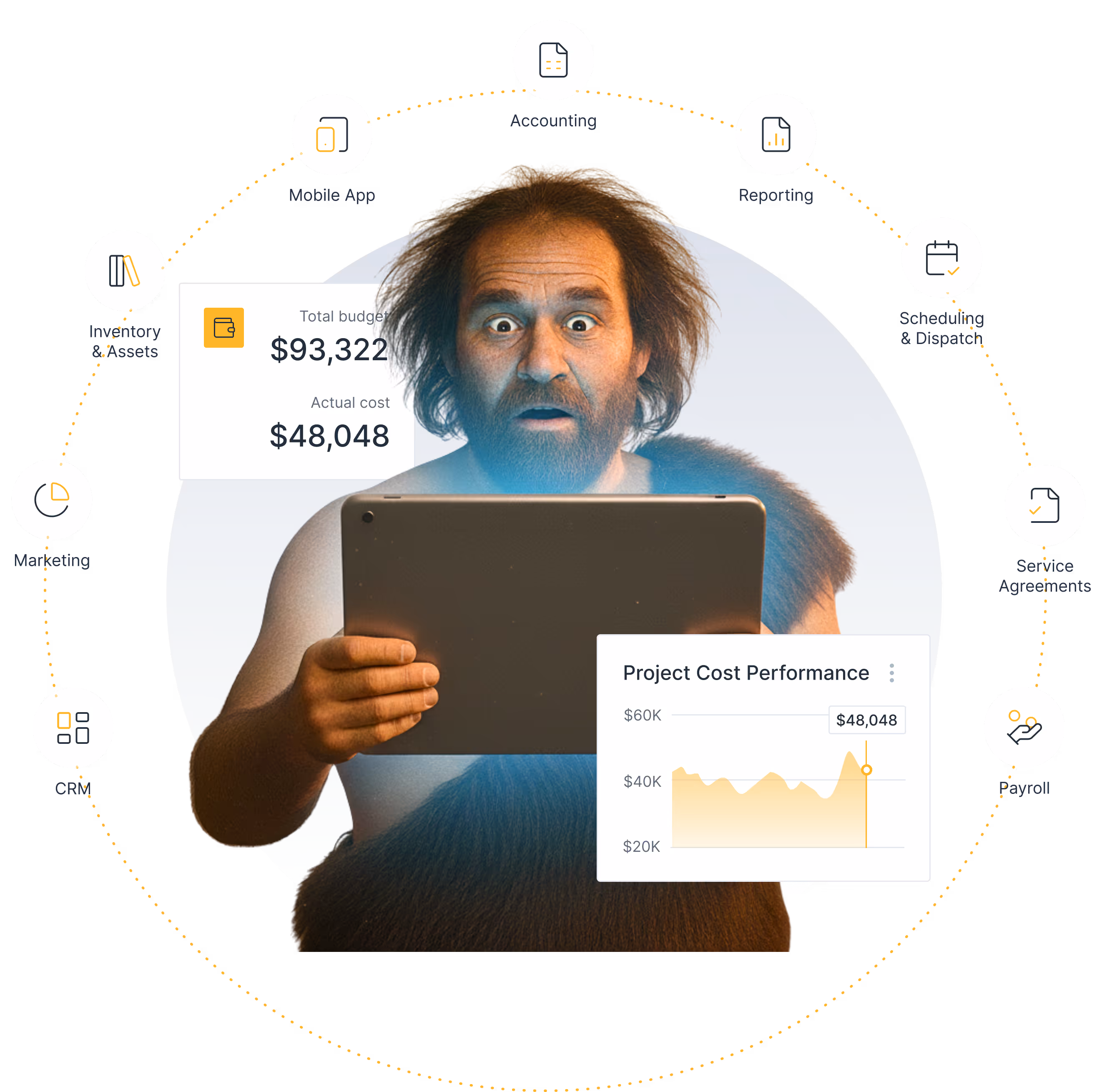 Evolution is different. It’s accounting + operations, built together from day one, to run your business, from the field to the office. No stone tools required.