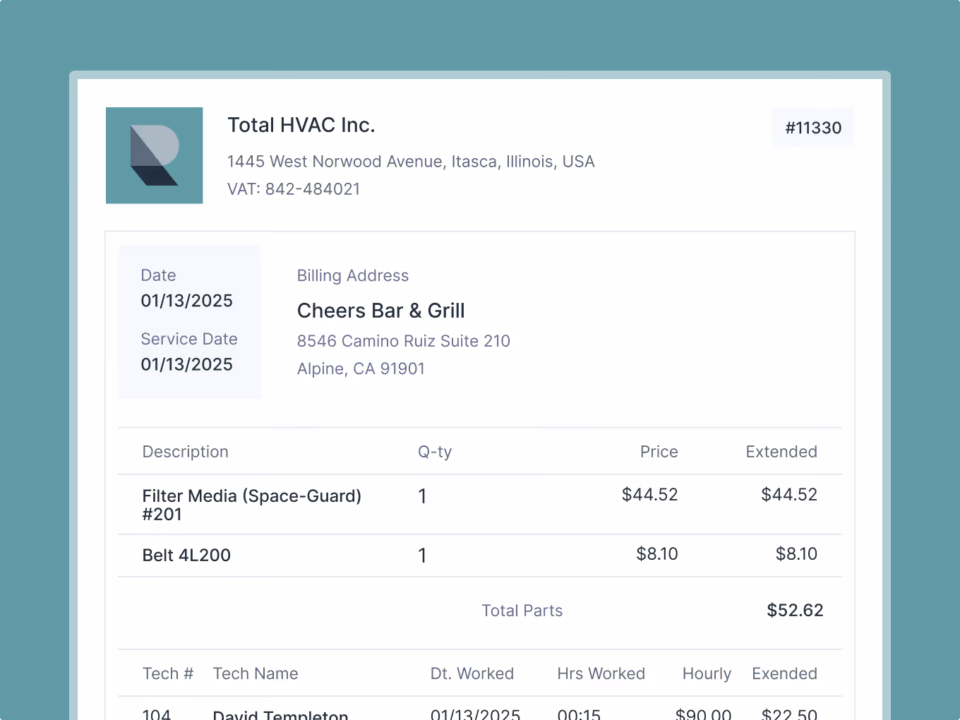 Get invoices out faster with our software for service businesses. Empower techs to create invoices and collect payments in the field, improving cash flow and saving time.